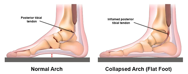 - Pessoas com pé plano têm maior risco de desenvolver tendinite do tibial posterior devido ao esforço adicional colocado sobre o tendão na tentativa de restaurar o arco do pé.